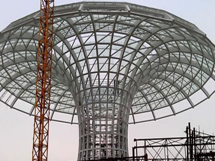二、球形网架结构因其结构新颖,受力合理,自重轻、用钢量低等优点。如大型体育场馆球形驻马店螺栓球网架、公共场馆球形网架、电厂驻马店螺栓球网架、水泥工业球形网架、仓储物流球形网架、驻马店干煤棚工业球形网架、驻马店收费站驻马店加油站球形网架、展览中心、影剧院、商场、航站楼、候车厅、工厂驻马店车间、仓库、电视塔等球形螺栓球节点网架。国内球形网架结构主要分为:驻马店焊接球节点网架及螺栓球节点网架两种。螺栓球节点网架其构件工厂内加工量较大,现场安装便捷,适用于现场工期紧,驻马店施工条件、用电量受制约,网架形状复杂、驻马店杆件定位困难的异形结构。螺栓球节点球形网架系统基本由驻马店杆件、螺栓球、支撑支座等组成。按照节点形式可分为交叉驻马店桁架体系、四角锥体系、三角锥体系等。支撑方式多为固定支座支撑。对于大面积、大跨度及有特殊受力或伸缩要求的网架结构可采用橡胶支座、滑移支座、球铰支座等支撑形式,以满足结构自身的受力稳定、均衡,便于内力释放等设计要求。
